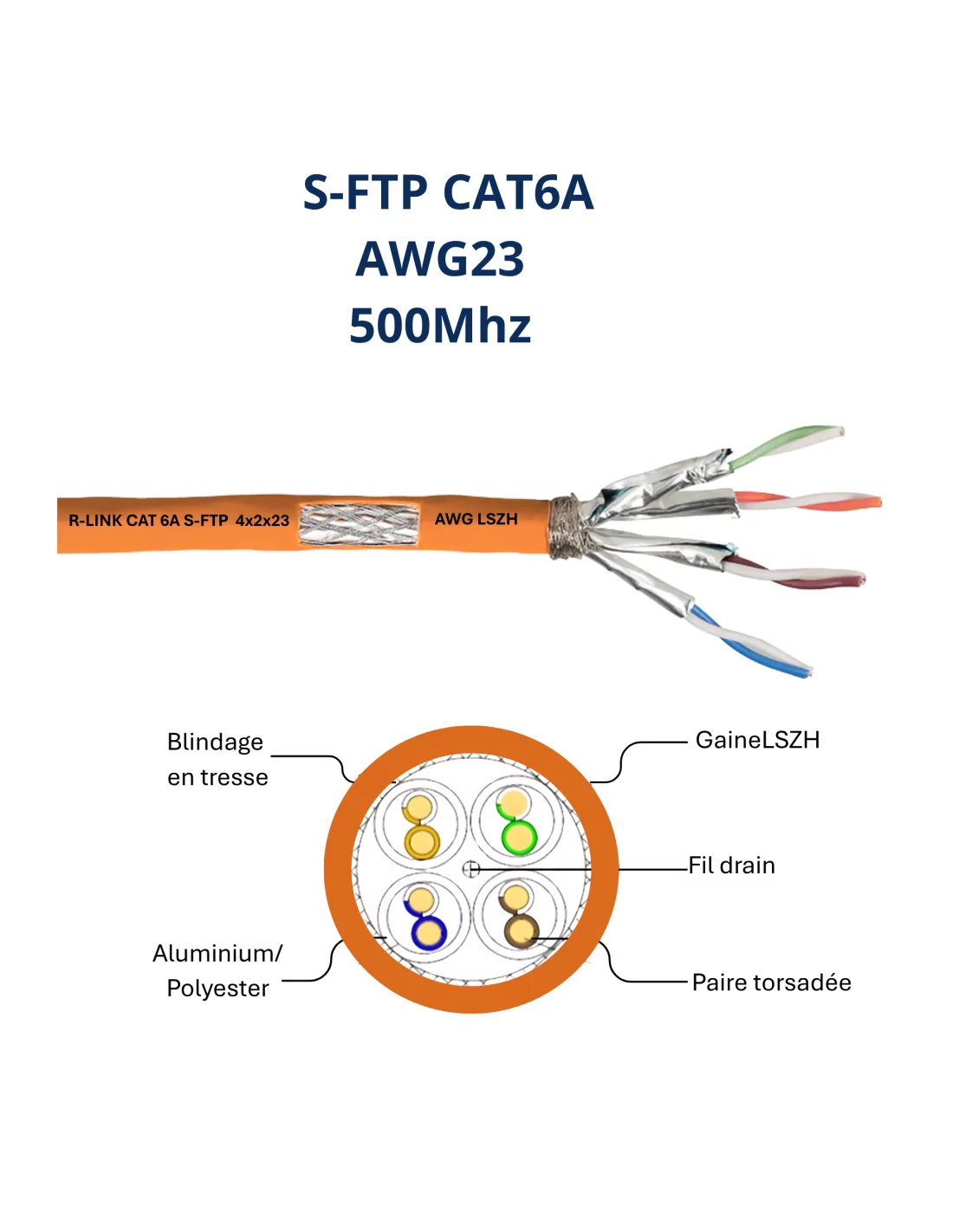 Câble Réseau CAT6A S-FTP 4 Paires AWG23 - Blindé 10 Gigabit Ethernet