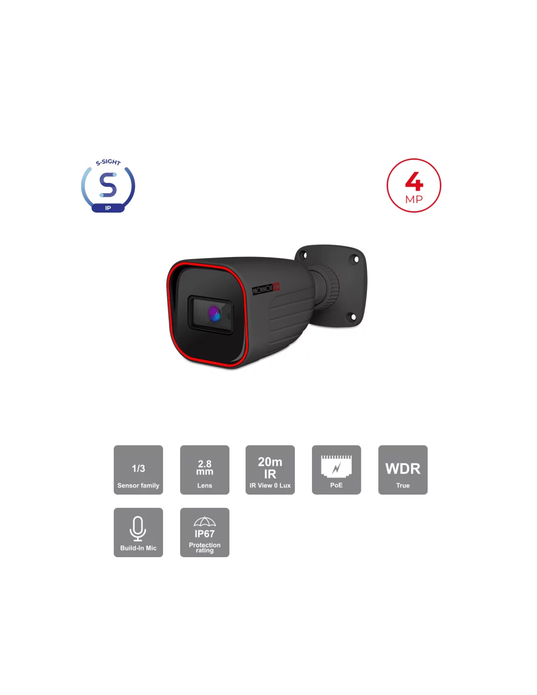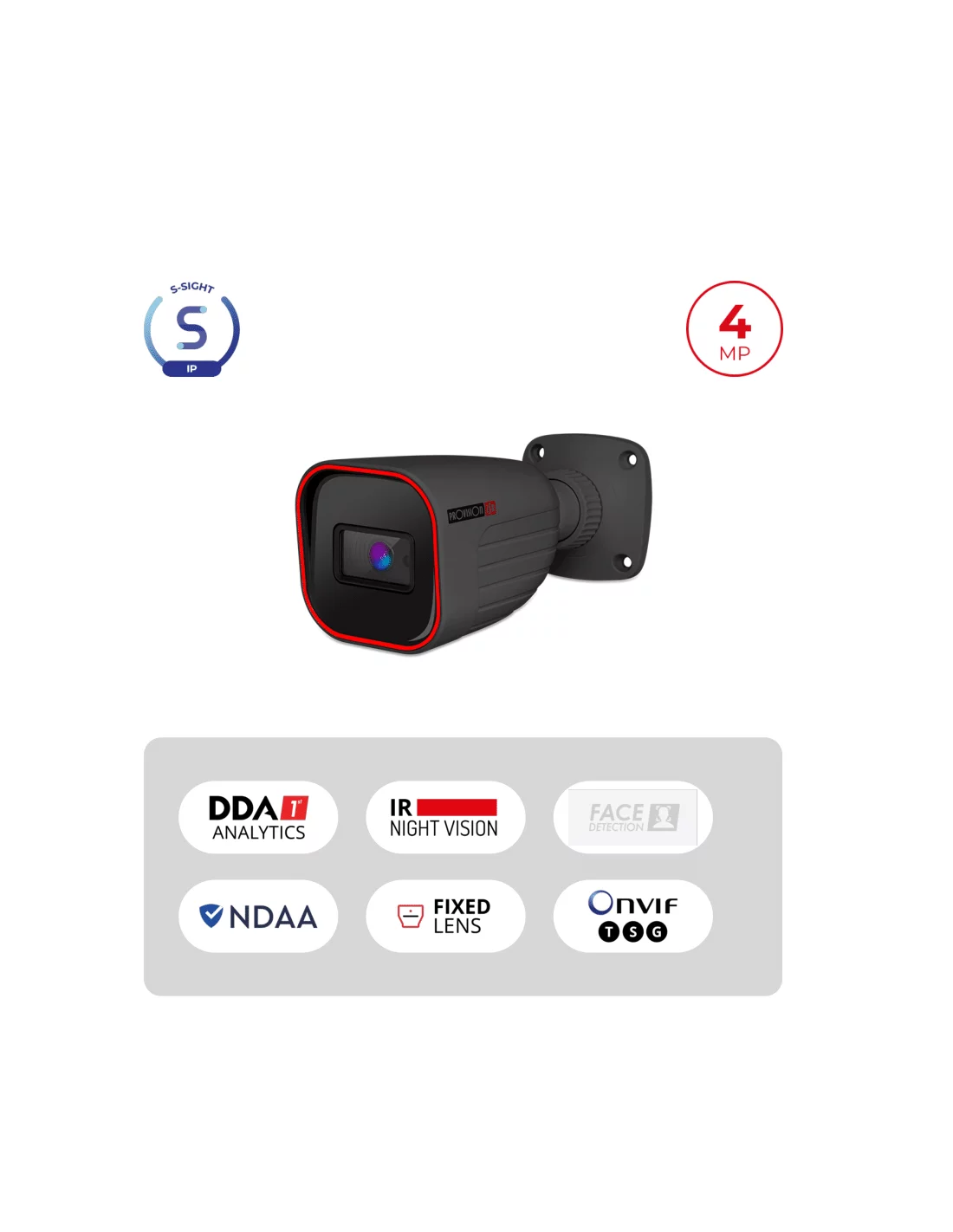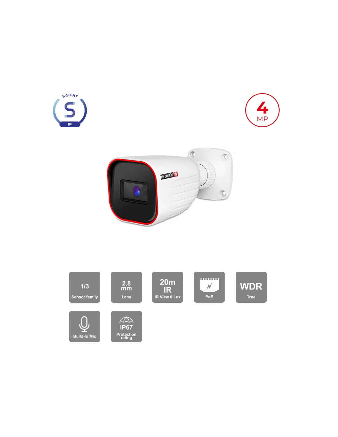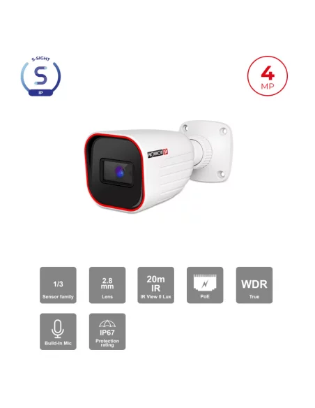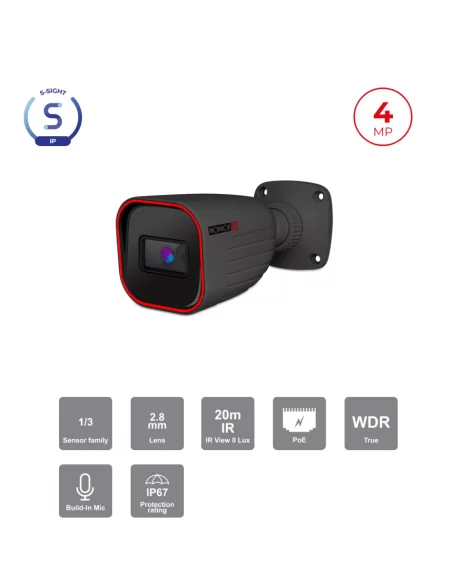 Caméra Bullet IP 4MP PoE – S-Sight Series | H.265, IR 20m, Objectif 2.8mm