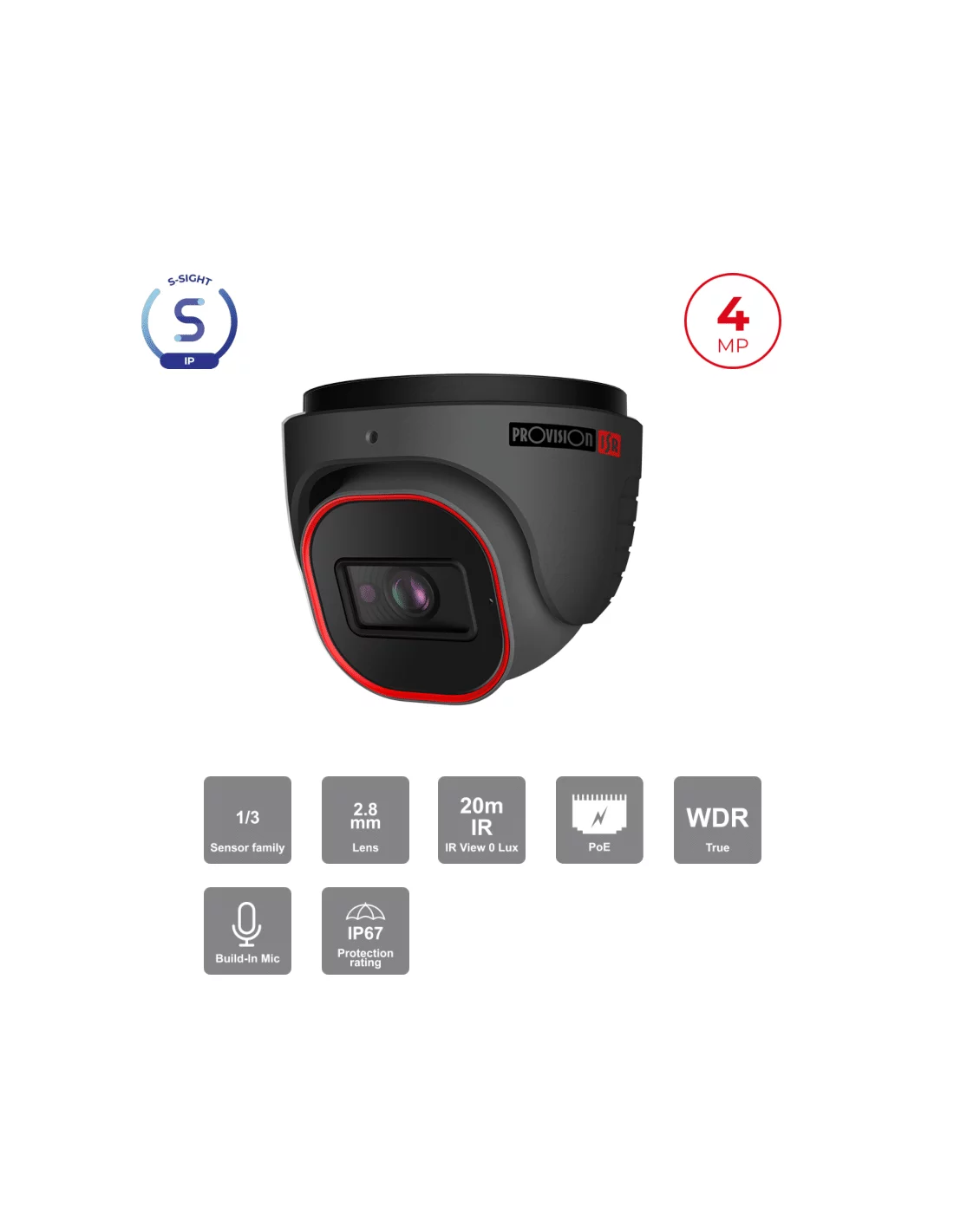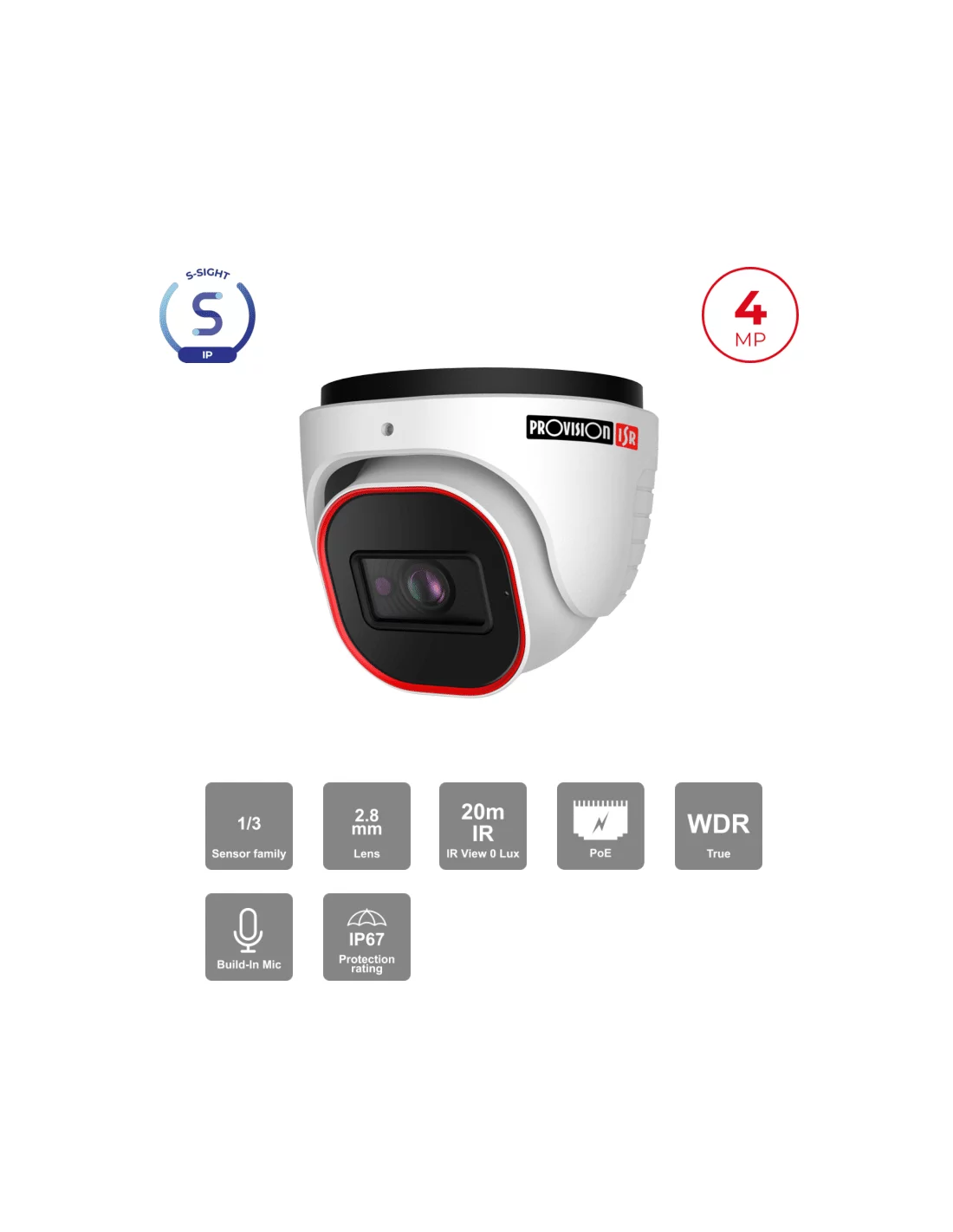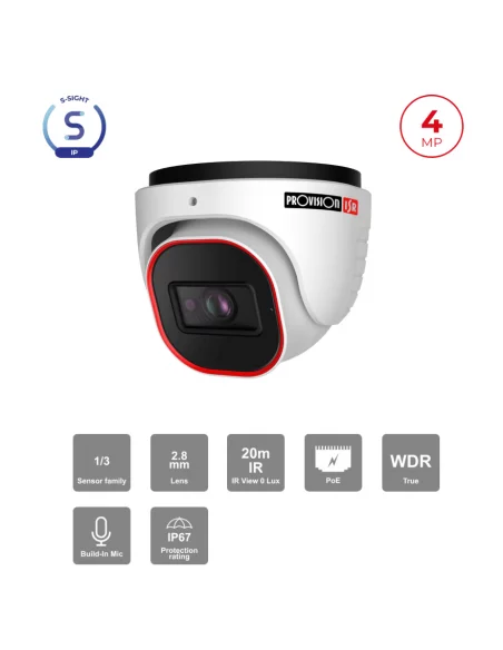 Caméra Dôme IP 4MP PoE – S-Sight Series | H.265, IR 20m, Objectif 2.8mm
