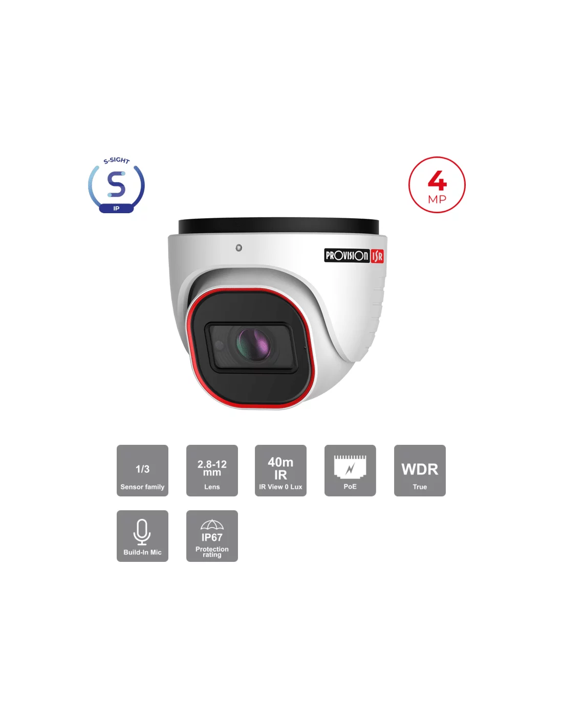 Caméra Dôme IP 4MP PoE – S-Sight Series | H.265, IR 40m, Objectif Vari-focal 2.8-12mm