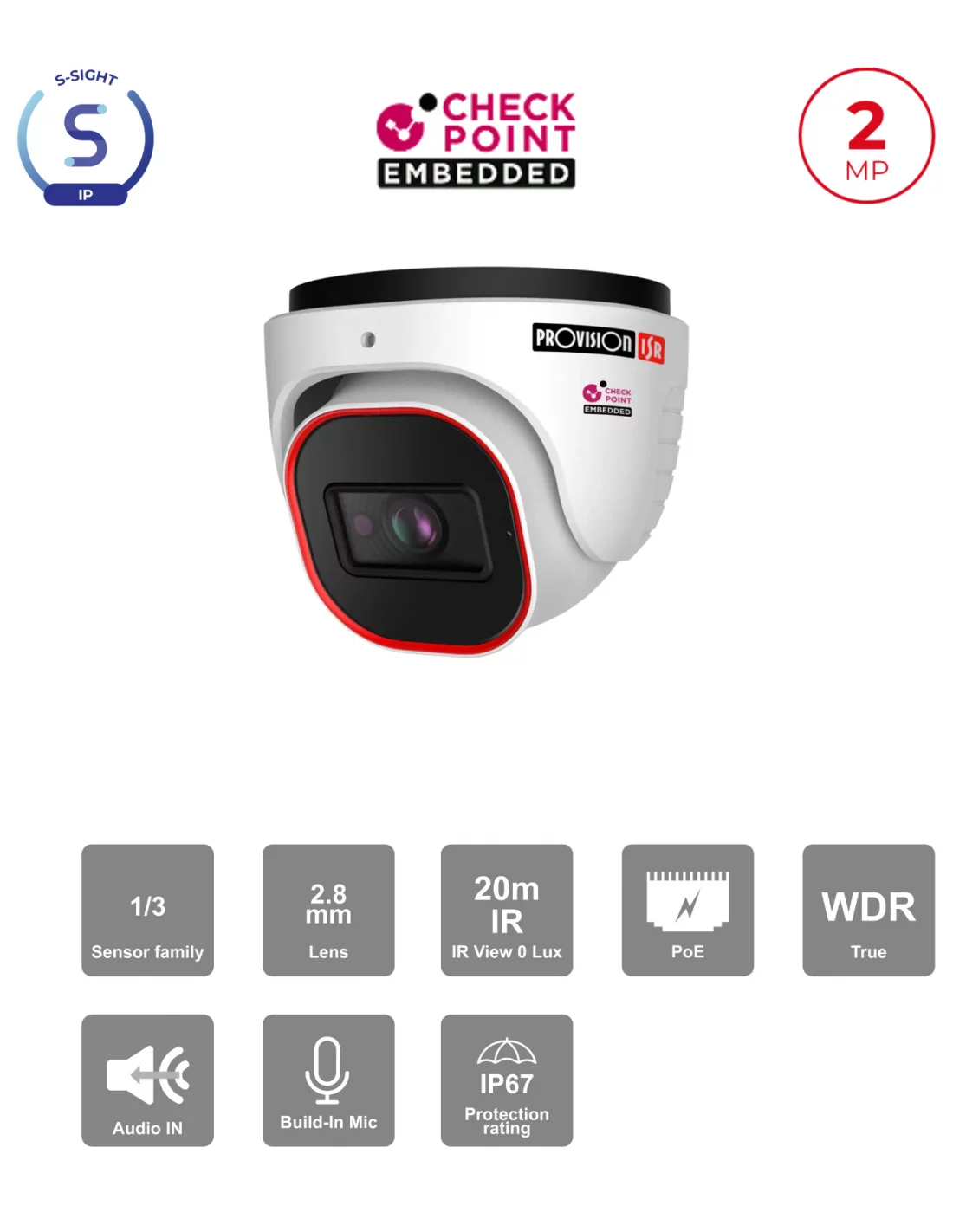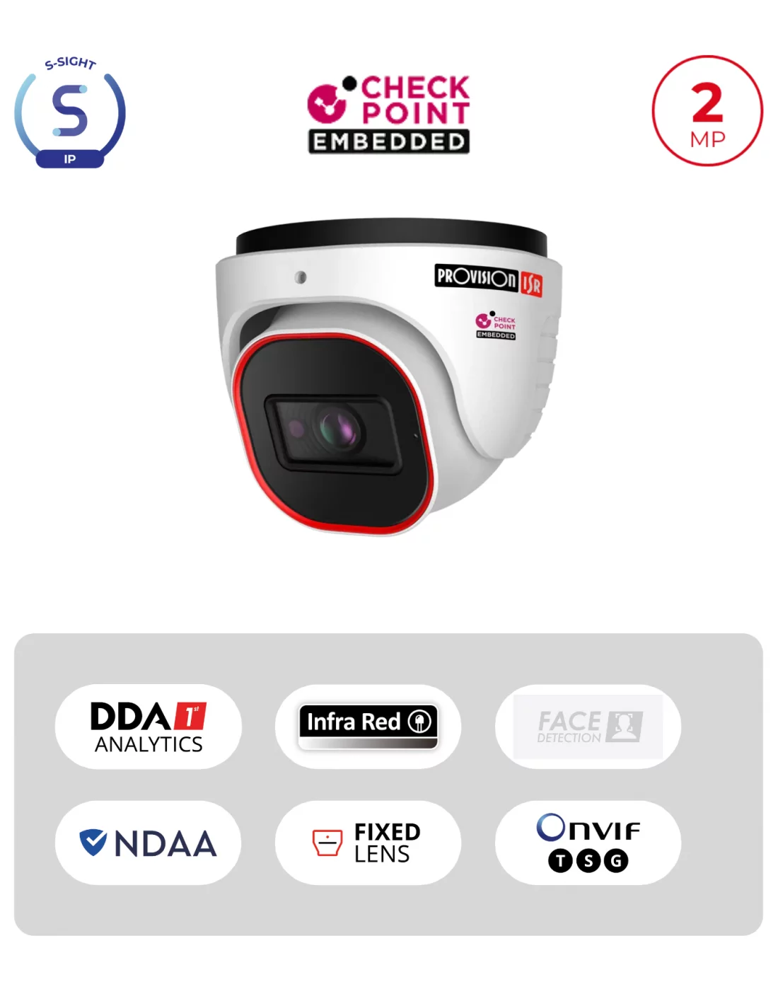 Caméra Dôme IP 2MP Fixe 2.8mm – IR 20m, Dual System, DDA Analytics & Sécurité Check Point