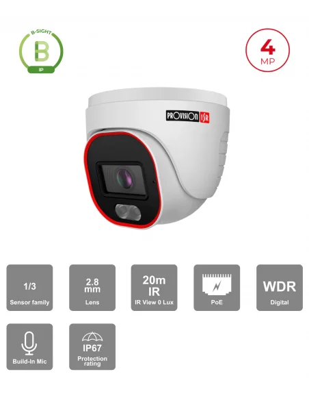 Caméra Dôme IP 4MP, B-Sight, à objectif fixe 20 m IR