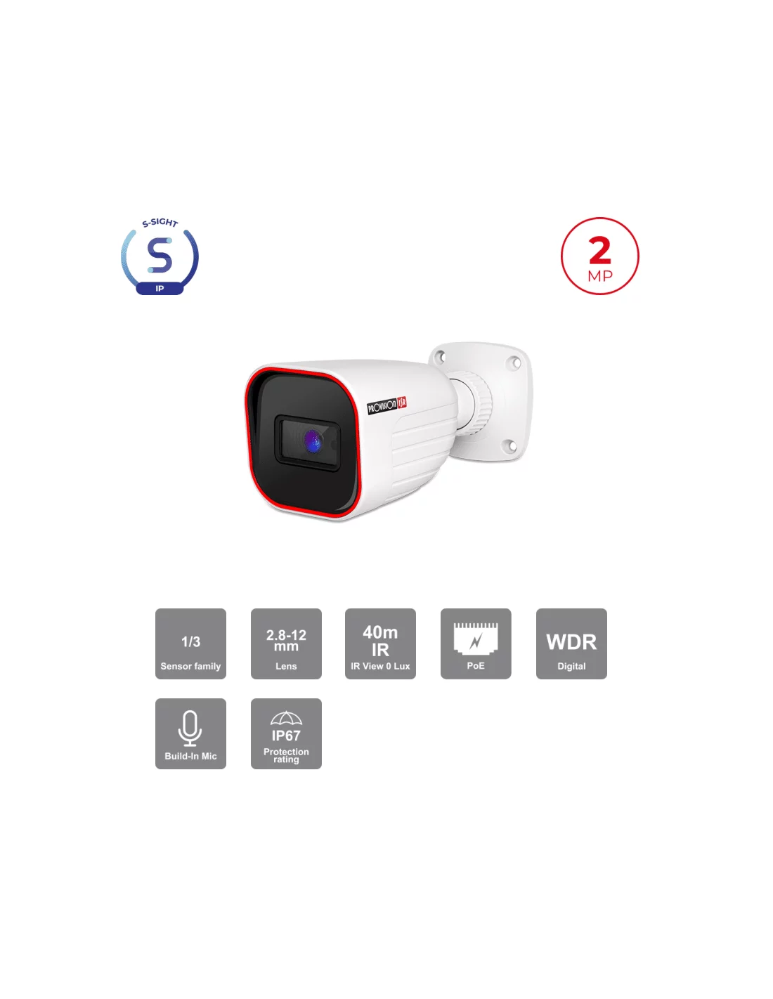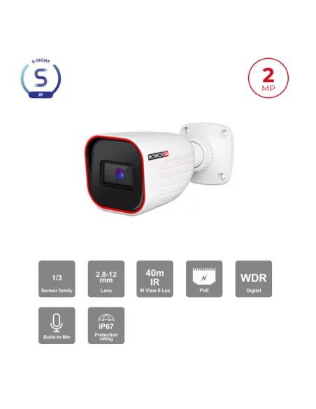 Caméra IP Bullet 2MP PoE – S-Sight, IR 40m, Objectif Varifocal 2.8-12mm, H.265
