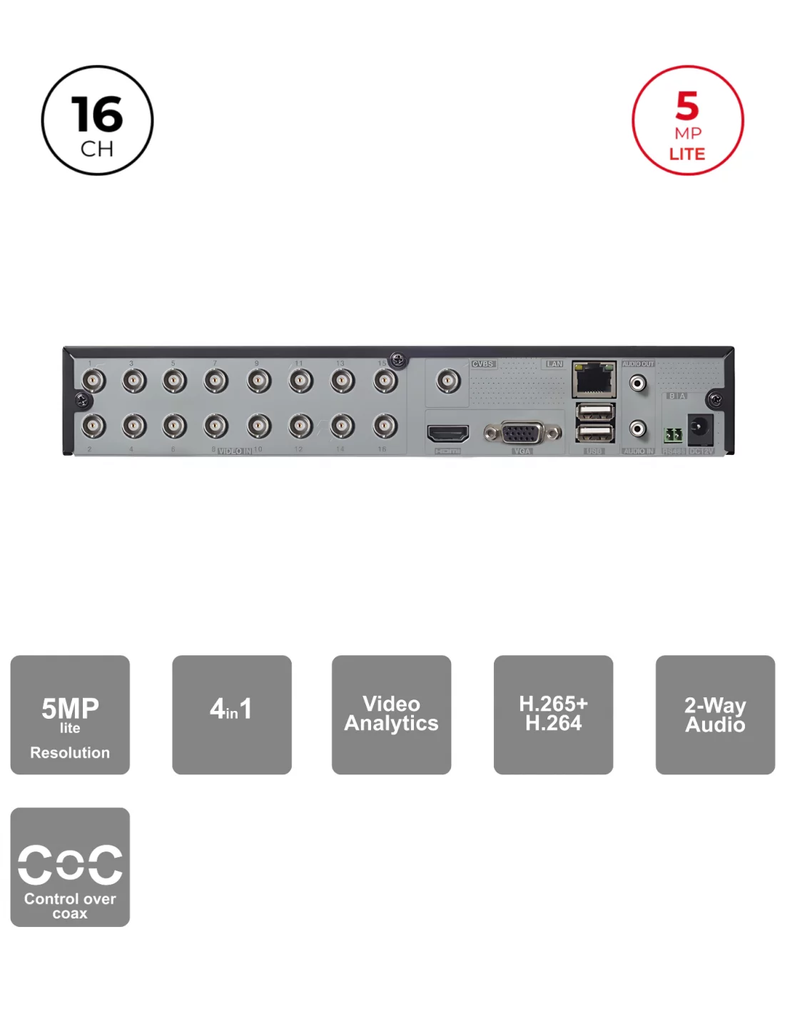 DVR Hybride 16CH + 8CH IP 5MP – HDMI/VGA – Audio