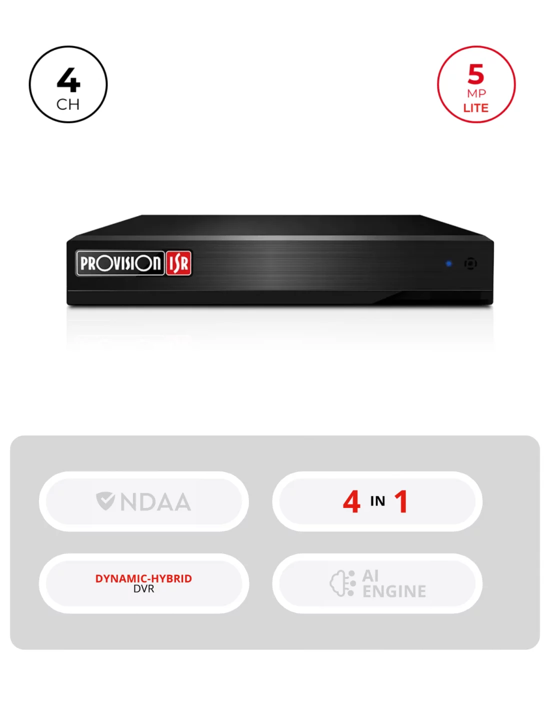 Le SH-4050A5-5L(MM) est un enregistreur vidéo numérique de haute qualité doté de la technologie Dynamic Hybrid. Cette technologie permet à l'utilisateur de décider du fonctionnement des canaux analogiques en fonction des besoins de l'installation. L'enregistreur, disponible dans un élégant mini boîtier métallique, prend en charge les analyses vidéo standard Provision-ISR.