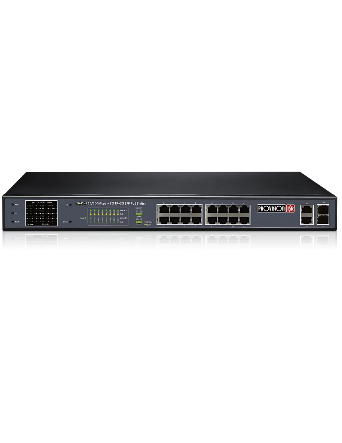 Switch PoE 16 Ports 10/100 Mbps avec 2 Ports Gigabit + 2 SFP – 250W