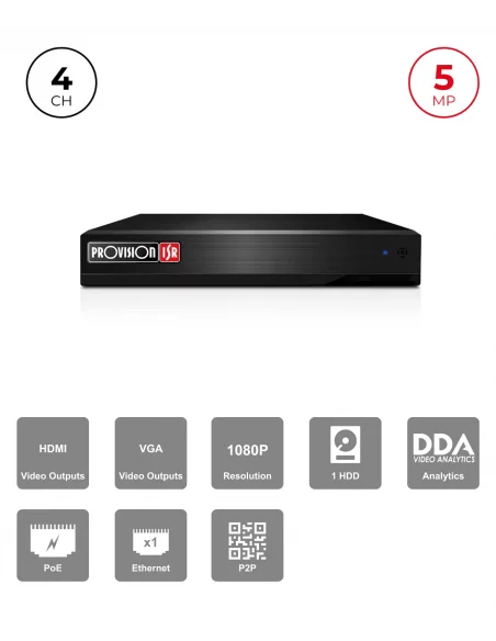 NVR 4CH PoE 5MP 1 HDD jusqu’à 6 To,...