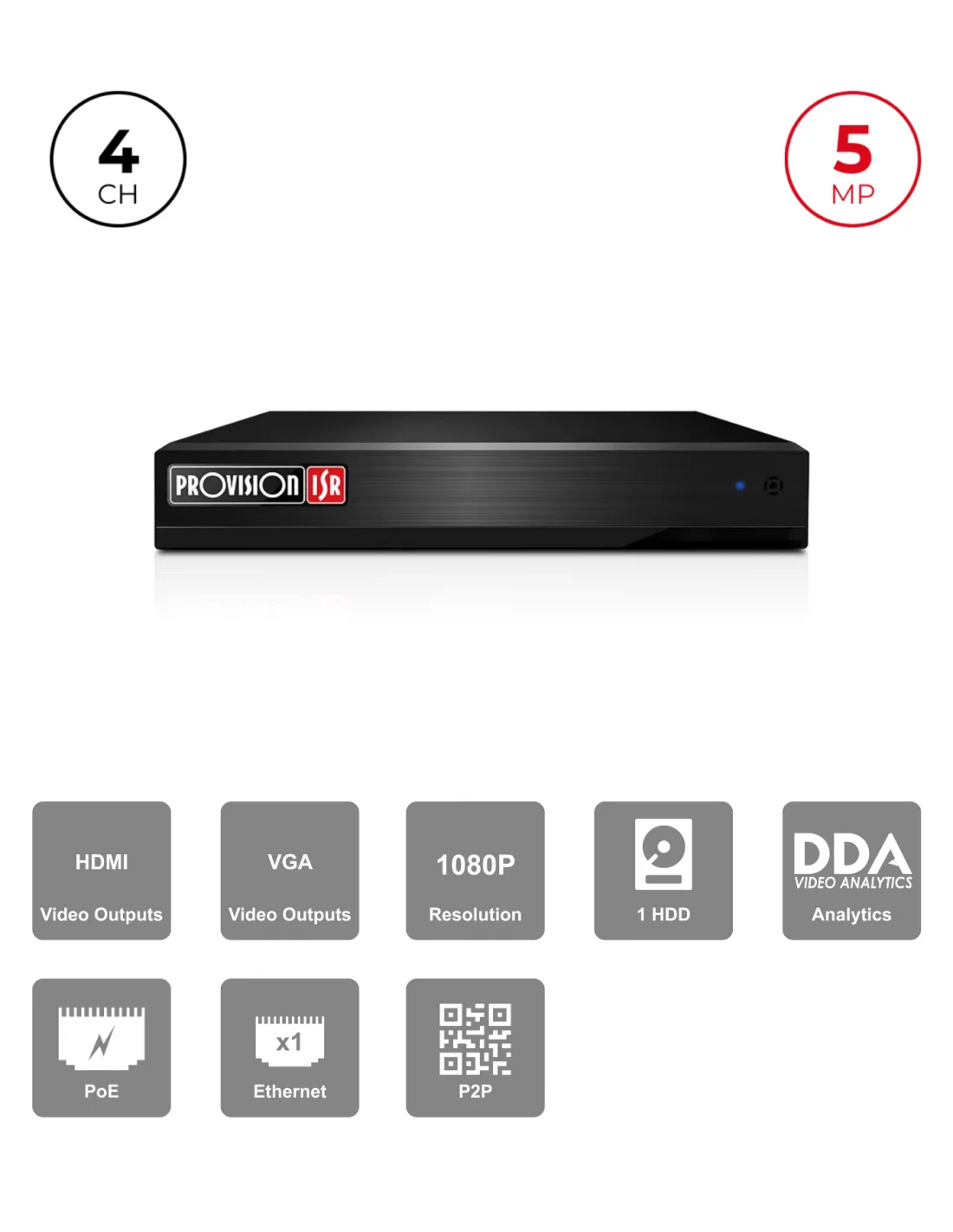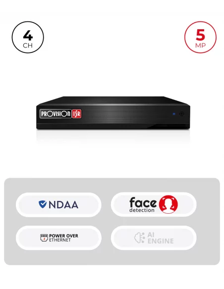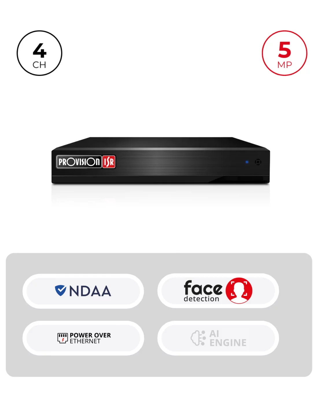 NVR 4CH PoE 5MP 1 HDD jusqu’à 6 To, HDMI/VGA, NDAA & Sécurité Check Point